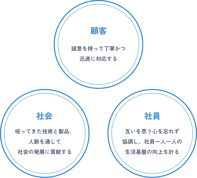 弊社は公共環境を通じて地域社会に貢献し、皆様の安心・安全に少しでも寄与出来る様努力し、皆様に御満足いただけるよう邁進して参ります。